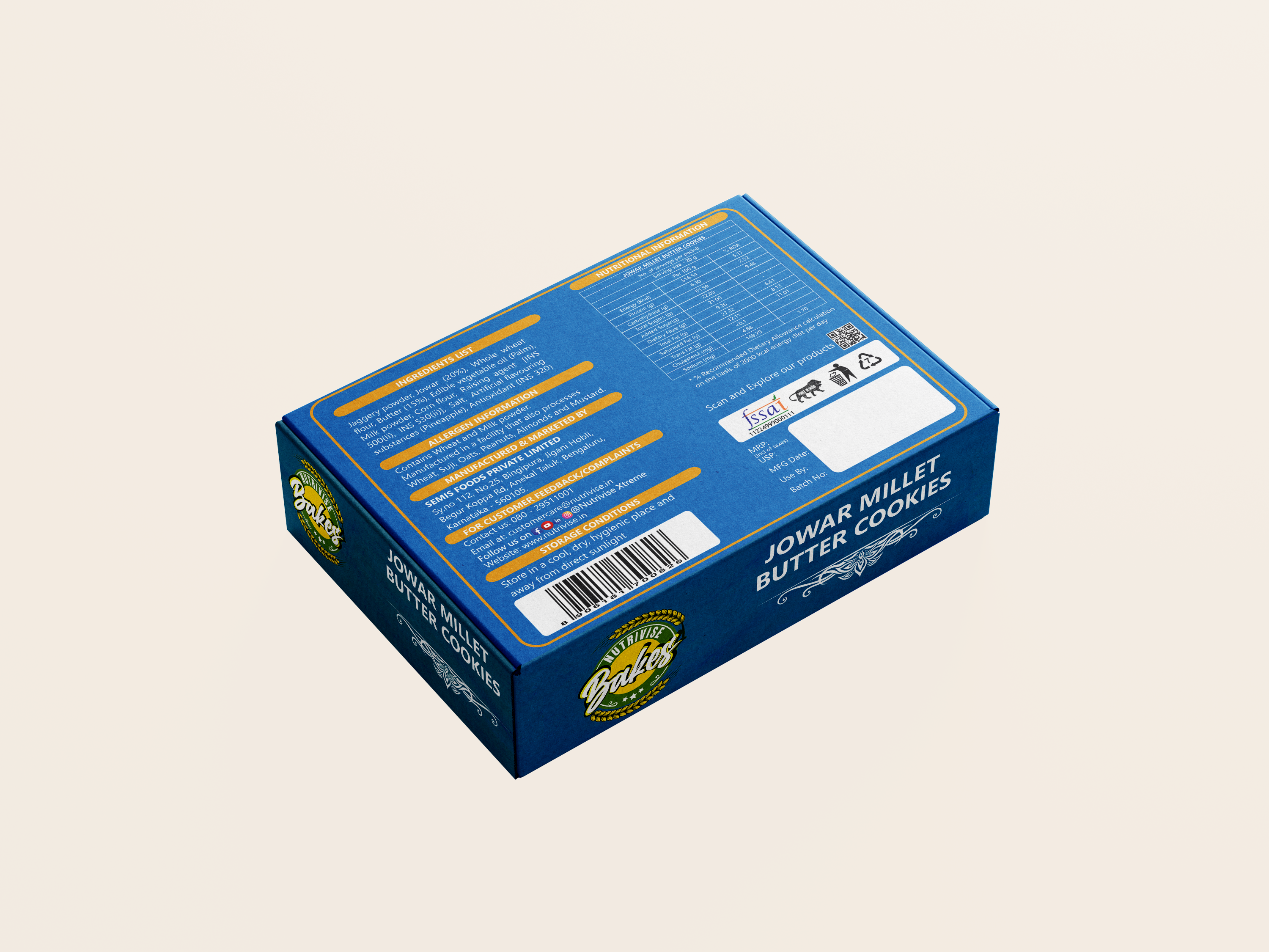Our Jowar Millet Butter Cookies are crafted using premium ingredients, including jowar millet, which is high in fiber, protein, and essential minerals. These cookies provide a nutritious alternative to regular cookies, offering a healthier snack that supports energy and wellness. Combined with the rich, buttery flavor, these cookies are the perfect choice for those seeking a balanced treat.