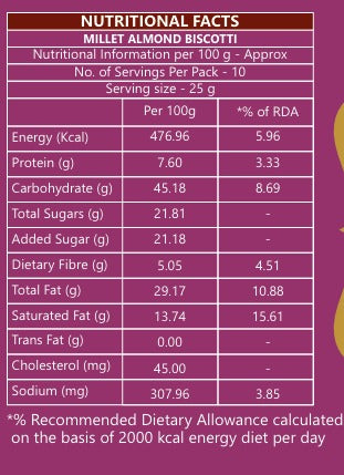 Nutrivise Xtreme Millet Almond Biscotti stands out for its rich, crunchy texture and wholesome composition. With a perfect balance of flavors and nutrition, it is a guilt-free indulgence for anyone looking to enjoy a delicious snack that aligns with their healthy lifestyle.